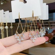 - The design of Minimalist Tassel Threader Earrings is delicate and fashionable. And there are five white round opals on the dangle earrings.